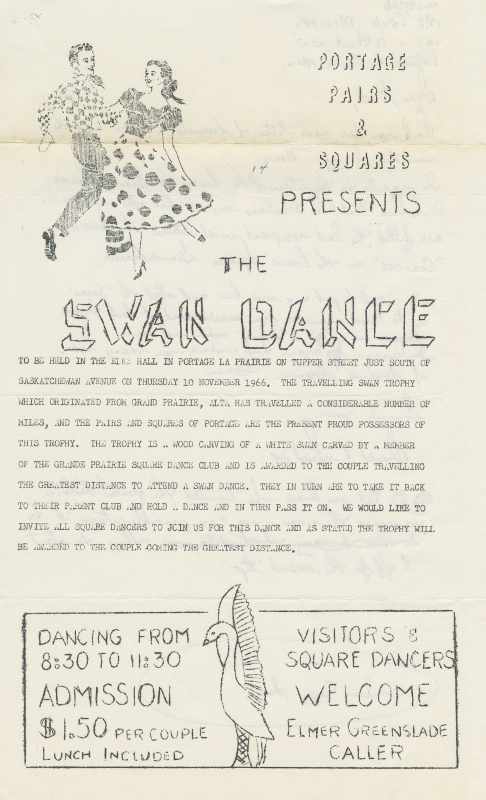 The Prairie Squares Dance Club was a local square dancing club that was formed in 1951. Partnered couples met regularly to sashay, swing, and