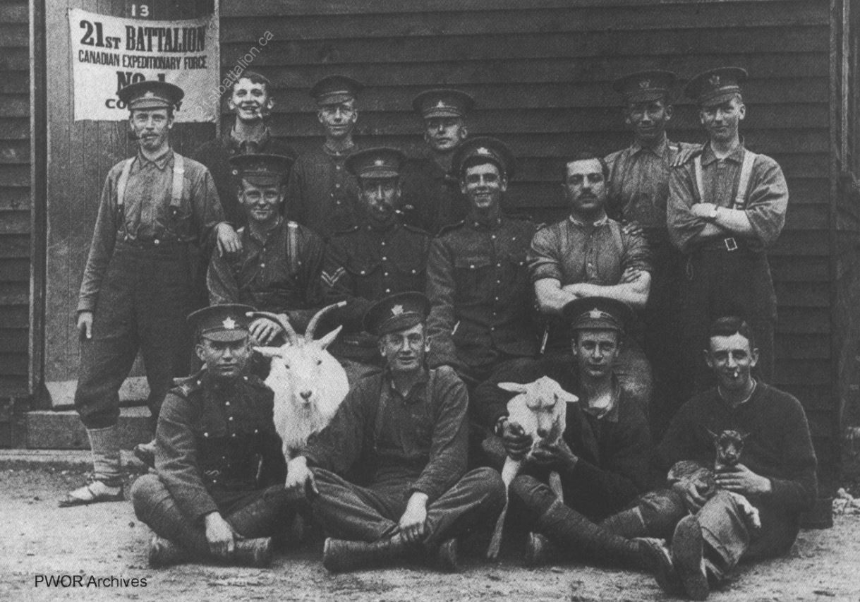 Nan, a white goat, was the mascot of the 21st Battalion. She was known throughout Belgium and France, and became the first mascot to cross the Rhine in 1918.