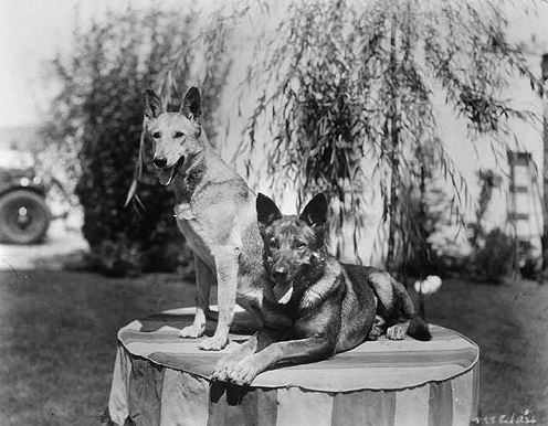 Rin Tin Tin, right, and his litter mate Nanette at a U.S. Army base in France shortly after Lee Duncan rescued them.