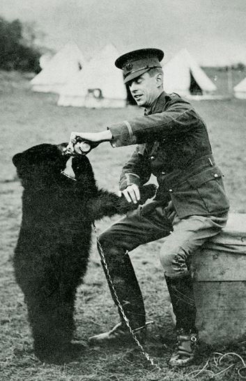 Known as “Winnie”, this black bear cub was bought by Canadian cavalry veterinarian, Harry Colebourn, on his way to Valcartier. The cub accompanied Colebourn to England, where she resided at London Zoo. It was “Winnie” who was the inspiration for Winnie-the-Pooh.