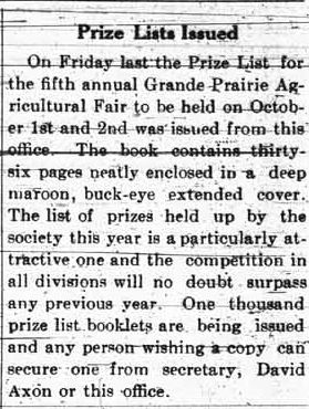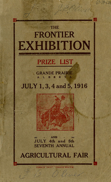 The fair photograph and the front page of the Grande Prairie Fair booklet are from collections held at the South Peace Regional Archives.