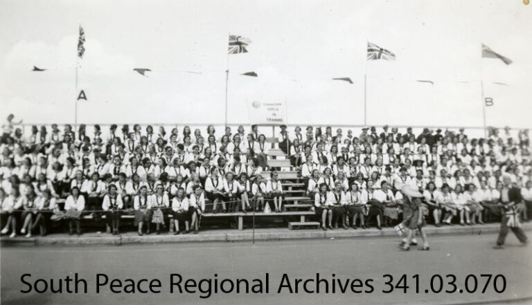 The six week tour of King George VI and Queen Elizabeth was the first time a reigning monarch had visited Canada.  As World War II loomed, the tour was scheduled to ensure Canada’s support of Britain.  Political motives aside, tremendous excitement was evident in the whole population.  It’s pretty mind-boggling to realize that Edmonton’s population of 90,000 swelled to 200,000 for the six and a half hour visit.  Many of the visitors were from the north, including 250 school children who had been sponsored through fundraising efforts led by the Legion and CFGP.  A special train fare of 1.25 cents per mile ($10.20 round trip) was in effect.  CFGP was going to broadcast the proceedings to those who remained at home, hoping for suitable atmospheric conditions for clear reception.