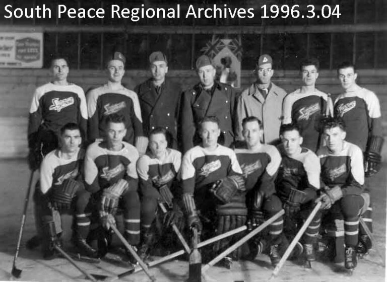 There had been predictions that there would be no hockey in the area because many of the players were in the army, but it turned out that the younger players gave a good account of themselves in the first game. A late start to getting ice made resulted in the teams having little practice. An officer from the Military Training Centre was present and stated that they would soon have an outside rink ready, and the Centre would have at least one team from among the recruits. The second article announcing the next game mentions that some of the Sexsmith players had been skating on local ponds to get in shape. A far cry from the way things are now!