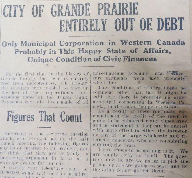 The newspaper called it a “unique condition in civic finances” and claimed that “probably” no other municipality in Western Canada was in such a position. However, the population was just over 1000, and municipal services of any kind were pretty limited.