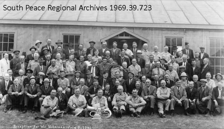 Soldier Spotlight highlights veterans from the Archives’ online Soldiers’ Memorial. Each week, our volunteers select a remarkable individual to showcase in this new blog series. The Soldiers’ Memorial commemorates more than 1,100 WWI veterans and 2,300 WWII veterans from our region. Three dedicated volunteers have contributed over 1,200 hours to this project by researching and writing biographies. Our goal is to have all South Peace soldiers acknowledged for their service. If you know of someone who lived in the South Peace and should be listed on the Memorial, or would like to get involved by researching a local veteran, please contact the Archives.