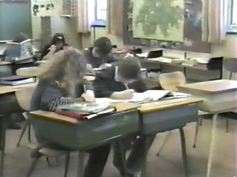 By the time this school tour was filmed (ca. 1995), Eaglesham School had added specialized spaces such as a science room, computer room, and a library, and the school catered to students from Kindergarten through Grade 12.