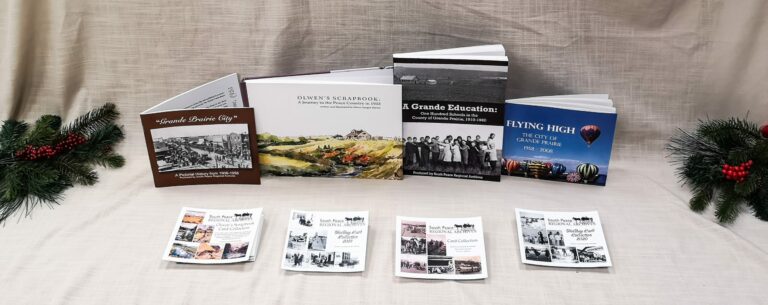 You asked, and we delivered! Due to popular demand, the South Peace Regional Archives has launched a new online store, featuring all of our books and card sets. To celebrate this exciting event, we have printed three brand new sets of notecards: a 2020 Holiday Collection, a General Collection AND a collection featuring artwork from Olwen’s Scrapbook: A Journey to the Peace Country in 1933. These items would make for a great stocking stuffer or last minute Christmas gift for the heritage enthusiast in your life.