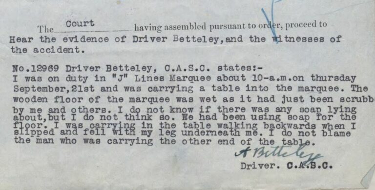 Image: Arthur’s description of his injury from his service file (Library & Archives Canada)