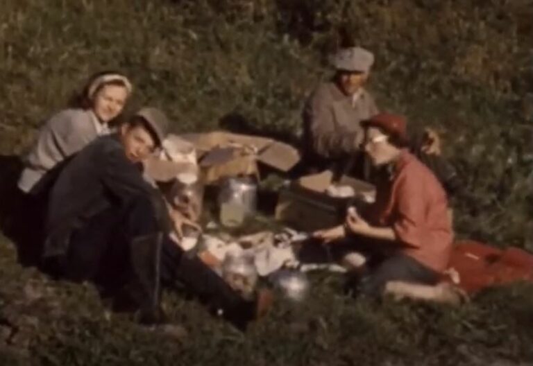 Image: A film still showing a picnic (SPRA 449.01.11, Fonds 449: Foster Family fonds)