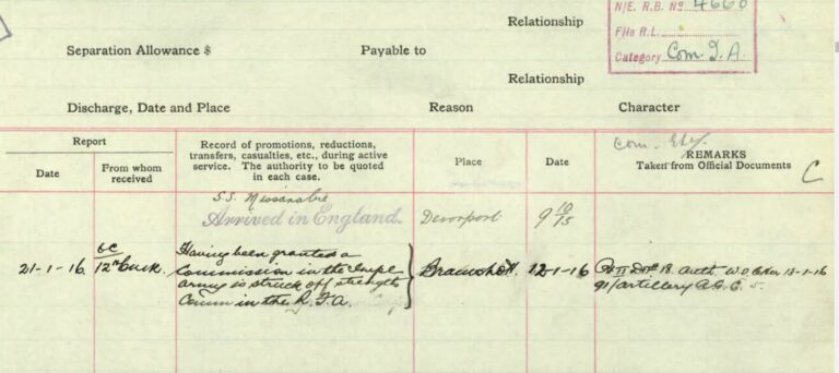 Image: An item from Neville’s military service file (Library & Archives Canada)