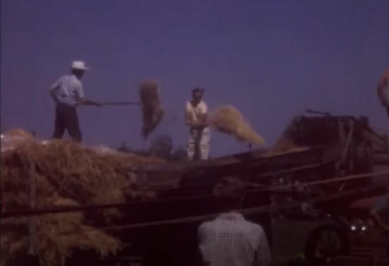 In later years, however, Pioneer Days became a way of preserving the history of the area. In an era when machines were taking over, many were concerned that the toils of the early settlers would be forgotten. And so the focus of Pioneer Days shifted. As seen in this film taken circa 1970, the event had evolved into an opportunity to share with the community the agricultural roots of the South Peace by holding demonstrations of steam engines, threshing machines, and sawmills. Domestic activities were also exhibited in the form of crafts, quilts, baking, and preserves.