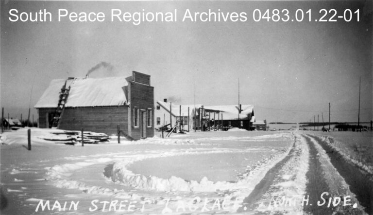 Image: A view of the north side of La Glace’s main street in winter, ca. 1935 (0483.01.22-01)