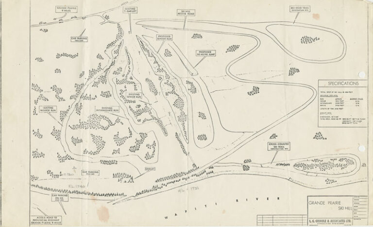 Todays “From the Vault Friday” features a proposed map of the Nitehawk Ski Hill from the Kinsmen Club of Grande Prairie (Fonds 139). The Kinsmen Club of Grande Prairie was chartered in 1942. The object of the club was “to promote and direct fellowship among young men of good character” in order to educate and encourage them regarding ethical business practices, the welfare of their community, tolerance and acceptance of all peoples, and service work in their community.