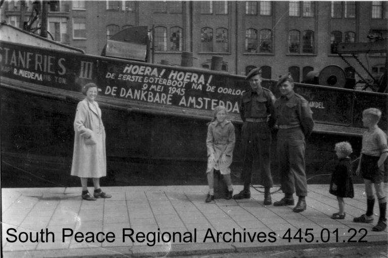Soldier Spotlight highlights veterans from the Archives’ online Soldiers’ Memorial. Each week, our volunteers select a remarkable individual to showcase in this blog series. The Soldiers’ Memorial commemorates more than 1,100 WWI veterans and 2,300 WWII veterans from our region. Three dedicated volunteers have contributed over 1,200 hours to this project by researching and writing biographies. Our goal is to have all South Peace soldiers acknowledged for their service. If you know of someone who lived in the South Peace and should be listed on the Memorial, or would like to get involved by researching a local veteran, please contact the Archives.