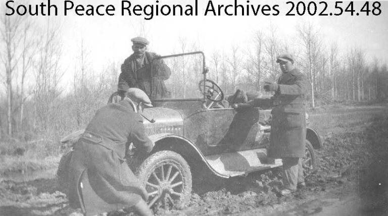 Arthur was born in Pipestone, Manitoba on November 10, 1891. He was living in Redcliff, Alberta when he was drafted in March of 1918. Arthur forfeited 21 days’ pay for missing parade on December 14, 1918 at 9:00AM. See pages 29 and 31 of Arthur’s service file for information about his family. In 1920, Arthur came to the South Peace and filed on homesteads at SW 26-72-12-W6, SW 22-72-12-W6, and NE 24-72-12-W6. He married Margaret O’Connel in 1925. Arthur was a mail carrier between Hythe and Goodfare for about eighteen years. His car “was the only car around to have license plates on it, and it was a common practice among those who owned a car to borrow Art’s license plates to make a trip to town.” Arthur continued to farm in the Goodfare area until his retirement in 1952. Arthur was hospitalized in Calgary for some time before his death on January 11, 1955.