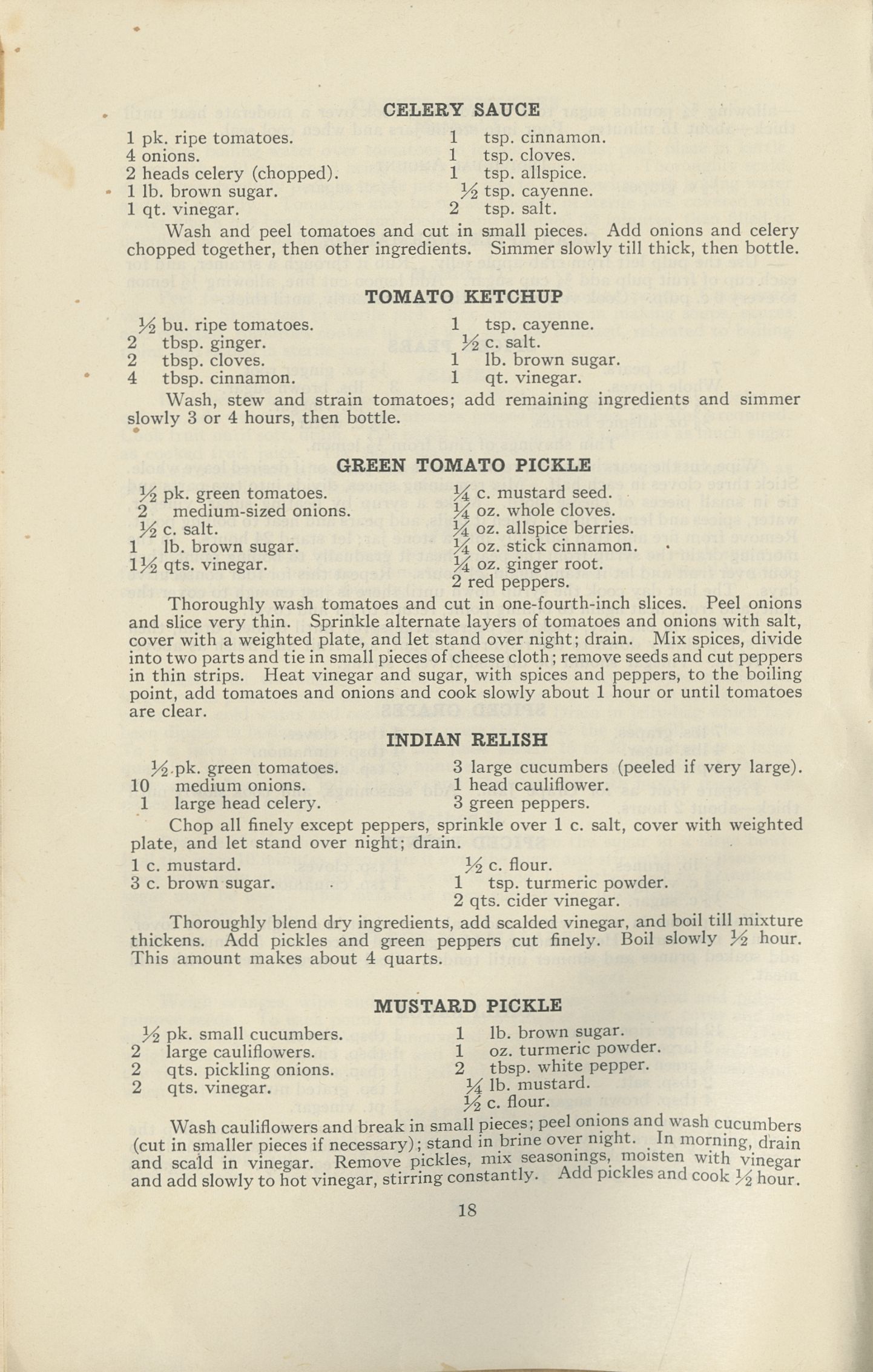 The recipe we used comes from the 1933 Household Science Book of Recipes, edited by Annie L. Laird and Edna W. Park. When looking at the recipe I was initially confused by the ingredient list which included “1/2 pk. green tomatoes.” I had absolutely no idea what that meant. A quick google search suggested it was ½ a package, which didn’t make any sense. After all, there is no standardized packaging for tomatoes, and even if there were, it would not be consistent with 1933. When complaining about this, one of my colleagues told me it was a “peck,” a unit of measurement I had only heard of in relation to Peter Piper and his pickled peppers.