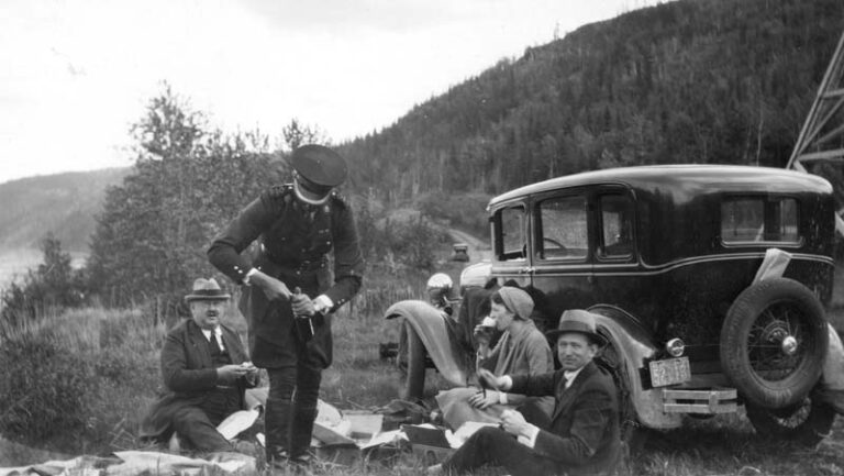 Above: Dr. Louis Fredette, veterinarian, and Thomas Wilson Lawlor and Mrs. Lawlor picnicking on the banks of a river, with the attentions of a uniformed chauffer, June 11, 1931. (SPRA 2000.30.03, Fonds 147)