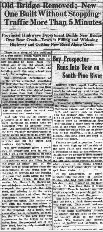 Just three years after the story posted last week about an ambitious program of bridge-building, the town of Grande Prairie was doing some bridge work of its own. When we recall the months long ordeal two years ago when the bridge over the creek was being repaired, this item saying a whole new bridge was put in with no more than five minute delays is pretty impressive. It also appears that the entire project was done in around two weeks.