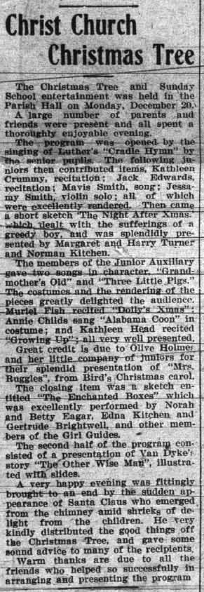 Flipping through past issues of Grande Prairie newspapers, you can see the importance of community celebrations. There are announcements for and descriptions of any number of dances, school entertainments, pageants, concerts… even programmes for special radio concerts were published in the weekly papers. This 1926 entertainment included songs, recitations, and skits, and of course no Christmas entertainment would be complete without the appearance of Santa Claus himself.