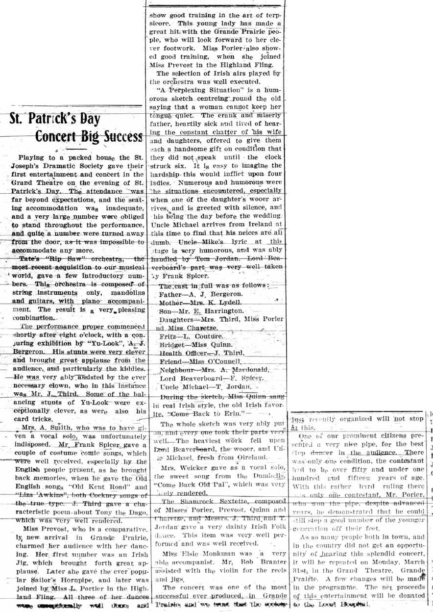 This account of a very ambitious St. Patrick’s Day Concert held in 1924 started off describing entertainment that was not Irish, so I wondered if they had misunderstood the idea of the celebration. But there were also Irish jigs, songs, and folk dances so it was very satisfactory after all.