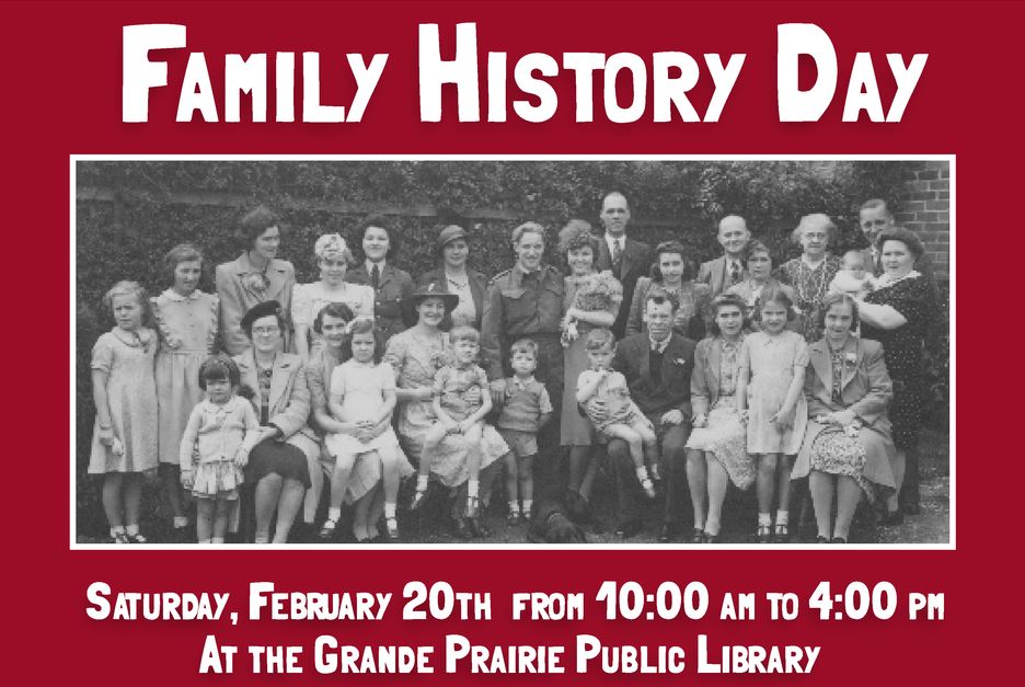 If you have ever wanted to know more about your family history, drop in to Family History Day at the Grande Prairie Public Library on February 20th. Admission is free, so come discover your family history!