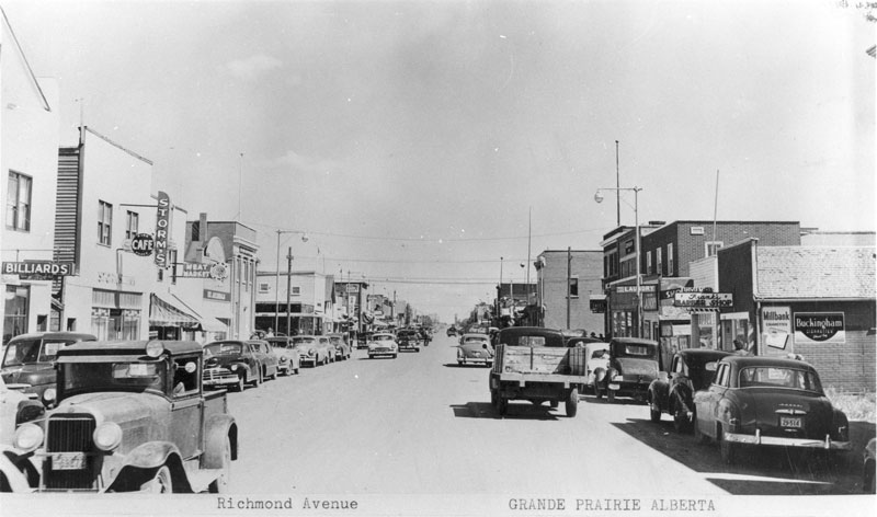 Richmond Avenue looking east from 102 St, Grande Prairie, 1950