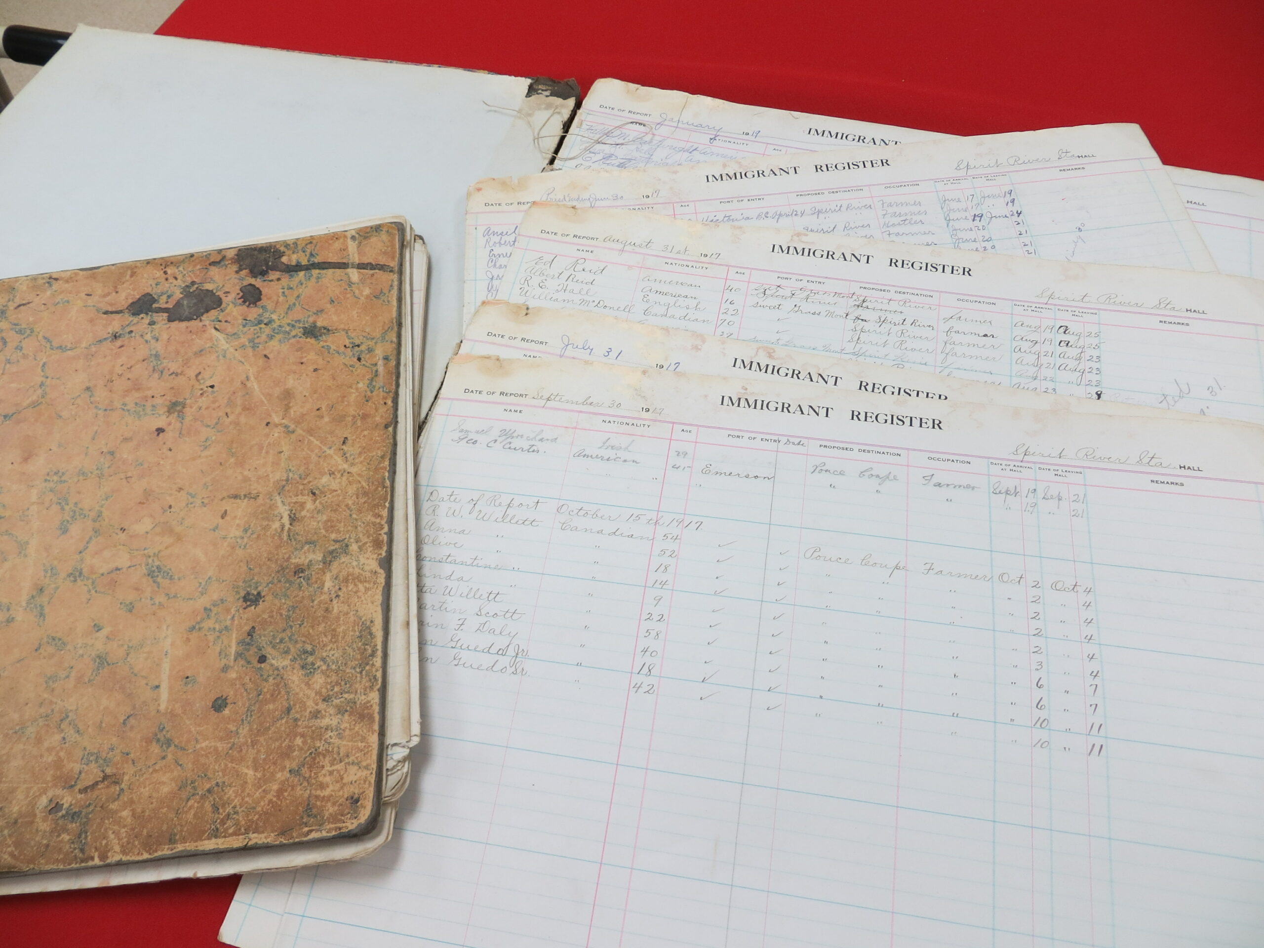 Their reply was a surprise! It seems the local John Deere dealership had two very old looking books and the information on where they had come from seems to have been lost. The dealership assumed these books contained records of early transactions from their business, until one day someone took the time to look inside. That is when it was discovered that these books were Immigrant Registers containing information on early settlers arriving in Spirit River from the dates 1917-1930. Listed inside the book is the names of people who came to stay at the Spirit River Immigration Hall.