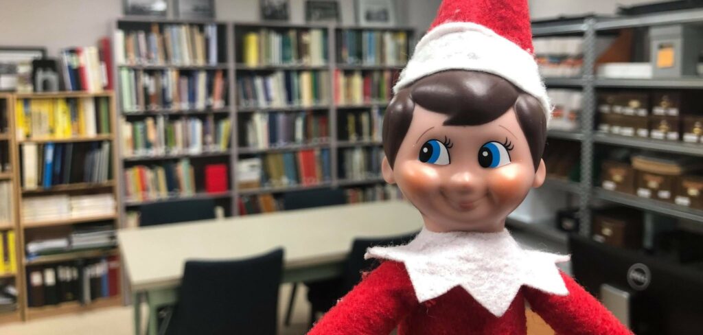 Once again, the Archives’ Elf on the Shelf, Fred Fonds, will return from the North Pole on December 1st for another holiday season. Fred has been finishing his quarantine in a top secret location so he can safely explore the Archives.