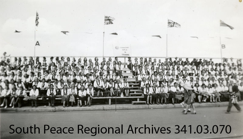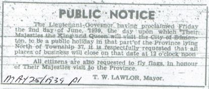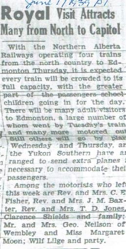 The six week tour of King George VI and Queen Elizabeth was the first time a reigning monarch had visited Canada. As World War II loomed, the tour was scheduled to ensure Canada’s support of Britain. Political motives aside, tremendous excitement was evident in the whole population. It’s pretty mind-boggling to realize that Edmonton’s population of 90,000 swelled to 200,000 for the six and a half hour visit. Many of the visitors were from the north, including 250 school children who had been sponsored through fundraising efforts led by the Legion and CFGP. A special train fare of 1.25 cents per mile ($10.20 round trip) was in effect. CFGP was going to broadcast the proceedings to those who remained at home, hoping for suitable atmospheric conditions for clear reception.