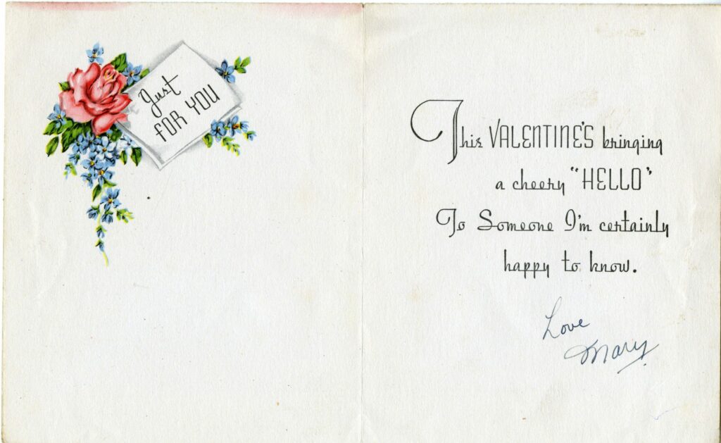 Today’s “From the Vault Friday” features a Valentine’s Day card from the Eddie & Margaret Schadeck fonds (Fonds 131)