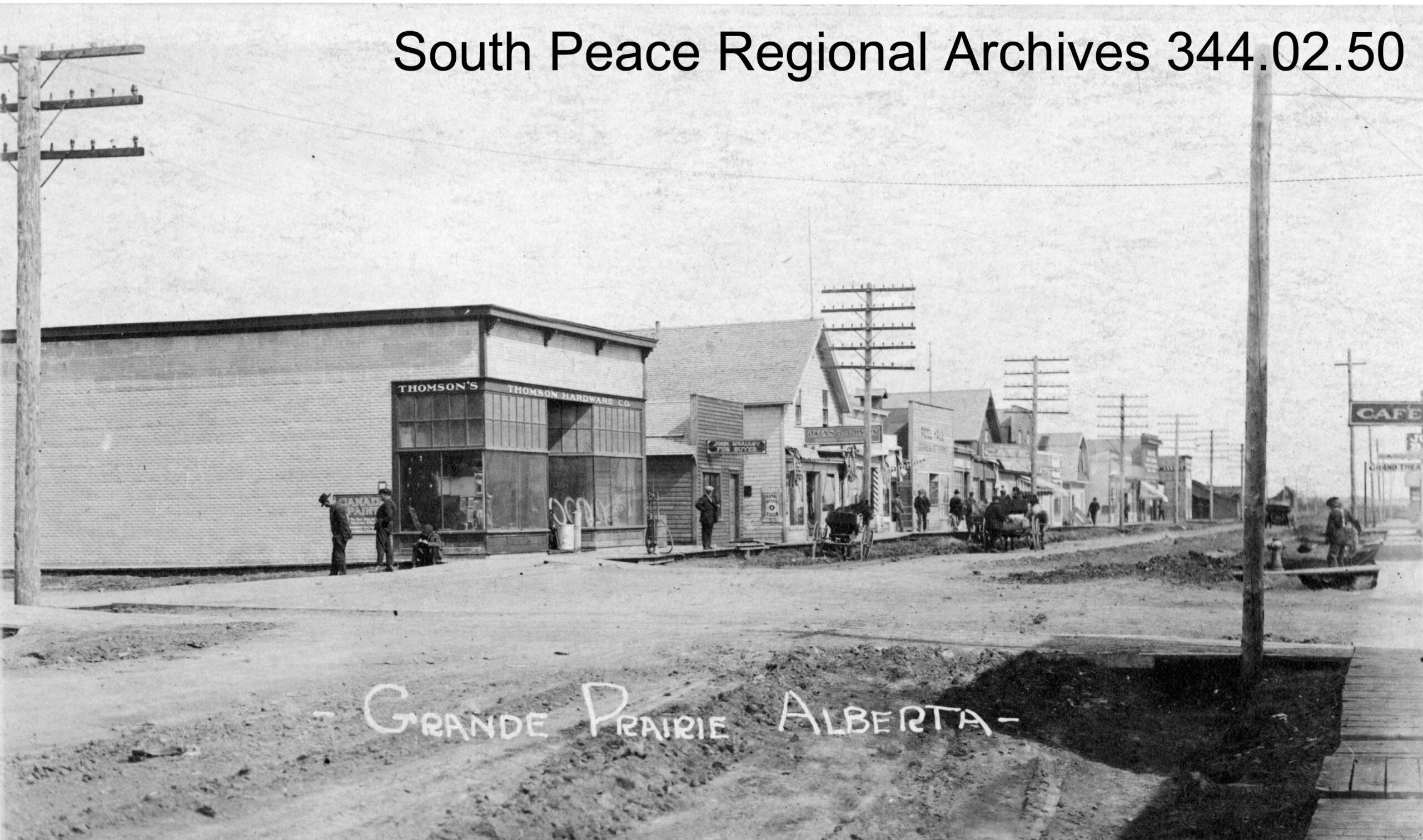The railway reached Grande Prairie March 22, 1916, and in the next six weeks the value of building permits issued by the village was $21,200. An earlier article on May 2, 1916 described 3 new business blocks under construction with plate glass windows and hardwood fixtures. As an “end of steel” village, Grande Prairie was experiencing rapid growth. The pioneers of 1916 would have been dumbfounded at the total of building permits issued to the end of march 2014 – $32,384,052!