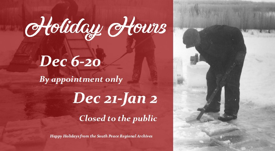 During the month of December, the Archives will be open limited holiday hours. During this time, there may be a delay in services. These limited hours allow our staff and volunteers to celebrate the holiday season with their families. It also allows our team to perform essential behind-the-scenes tasks to meet our mission and mandate. Thank you for your patience and happy holidays from the Archives.