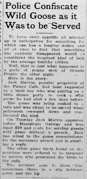 This story reminds me of the scene in the movie A Christmas Story, when the Bumpus’s dogs have stolen the turkey but the aroma lingers in the air. What happened seems a bit unfair, but I don’t know what the regulations were in those days. It’s curious that it was the cook who was charged, but I think the mistake was having the dinner in a restaurant. It also seems like a bit of a set-up that the police just happened along as the bird was about to be served.
