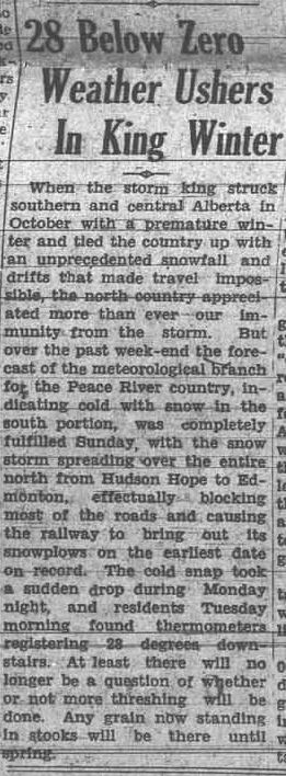 While we have had a reprieve from the awful weather and the snow is mostly gone, I’m sure we all feel let down by the kind of fall we had. Since the only thing we can do about the weather is complain about it, when I noticed this headline in the November 15, 1935 paper, I read it and decided things sure could be a lot worse!