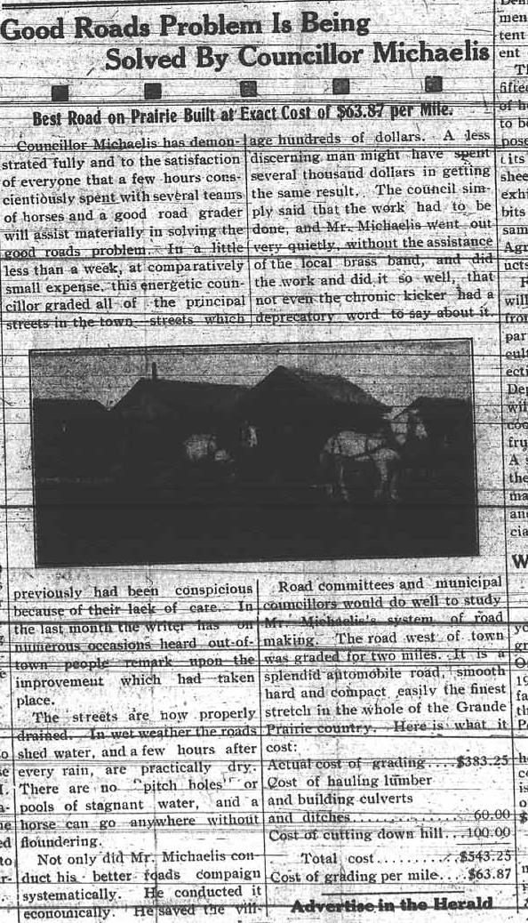 The condition of roads in town has been an ongoing problem, as this item from 1917 shows. One of the town councilors decided to do something about the situation, and it appears he was very successful, improving the roads and saving the village hundreds of dollars in the process.