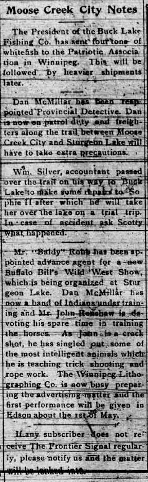 Hope you’re not getting tired of the news from Moose Creek City – but I found this column in the January 28, 1915 paper and couldn’t resist one last time. The original report of the “Ice Boat Adventure” had been in the December 10, 1914 paper, and almost six weeks later it was still being mentioned. It must have been one of the most exciting things to happen around there for a long time. It is also interesting to notice that the same people get mentioned in the columns every time – either they are the most prominent citizens of the area, or there aren’t very many people to write about!