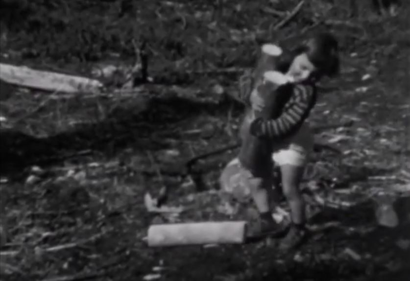 Image: A film still showing Janus carrying some logs (SPRA 449.01.01, Fonds 449: Foster Family fonds)