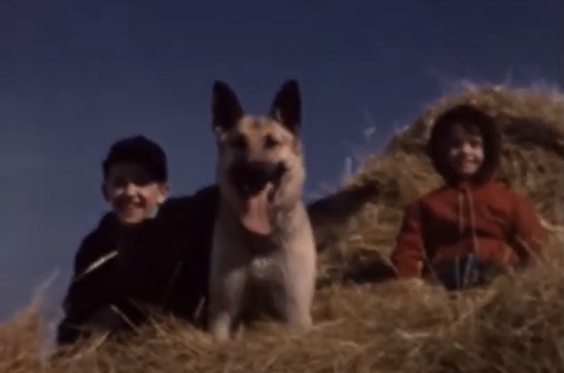 In addition to horses, the Stojan family also seems to have been quite fond of dogs; various dogs appear in their films. In this particular video, there are scenes of Linda playing with a litter of puppies, and Chuck frolicking with a German shepherd on a friend’s haystack.