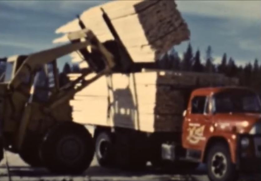 The film below shows various scenes from around a lumber mill (ca. 1960), but focuses especially on Miles Marcy’s truck being loaded with lumber.