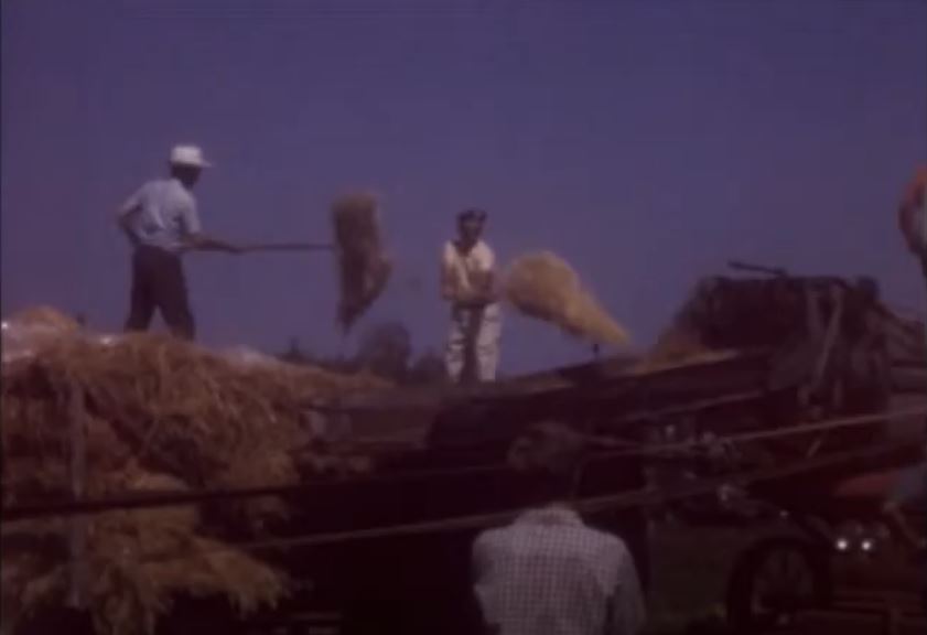 In later years, however, Pioneer Days became a way of preserving the history of the area. In an era when machines were taking over, many were concerned that the toils of the early settlers would be forgotten. And so the focus of Pioneer Days shifted. As seen in this film taken circa 1970, the event had evolved into an opportunity to share with the community the agricultural roots of the South Peace by holding demonstrations of steam engines, threshing machines, and sawmills. Domestic activities were also exhibited in the form of crafts, quilts, baking, and preserves.