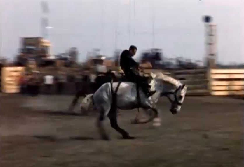 Image: A film still showing a bucking bronco at a local rodeo (SPRA 1974.74.22H, Fonds 138: Griff James fonds)
