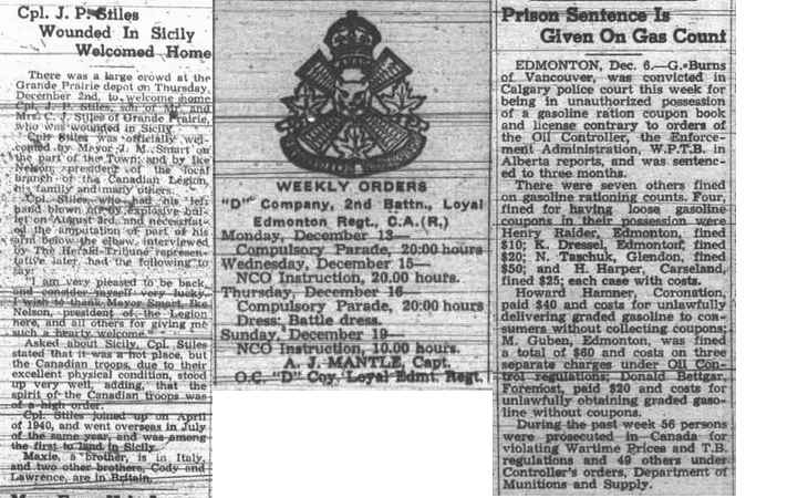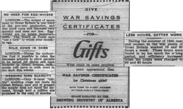 This week, instead of picking one subject, I have chosen various articles from one paper. War news was a very large part of the papers at that time, as shown by 3 articles from the front page. Also interesting to note is that the Christmas light up downtown lasted from December 18 until Christmas Eve – one week only.