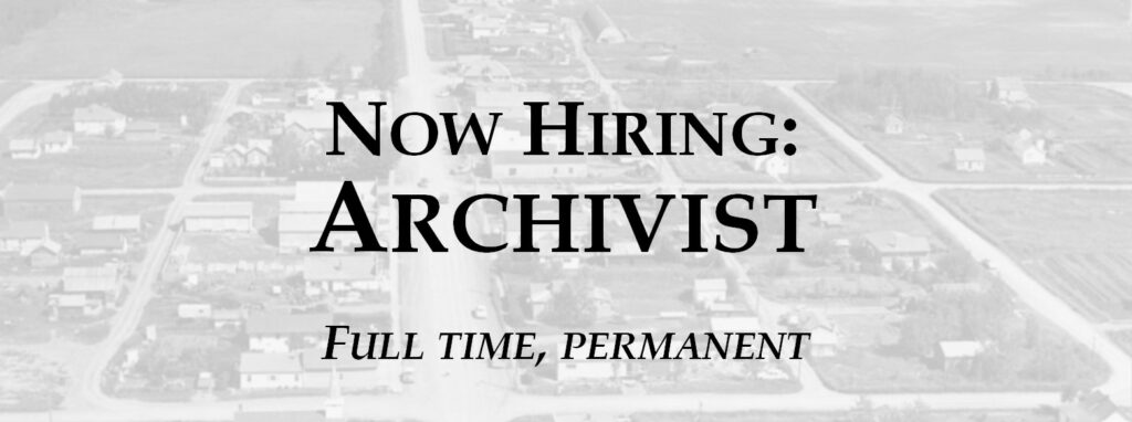 The South Peace Regional Archives in Grande Prairie Alberta is looking for a skilled, driven, and adventurous Archivist to join our team. Being part of a small non-profit organization you will not only gain direct experience in a range of archival activities, but take a leadership role in the heritage preservation of our region. You will be able to help guide our work, and have a direct impact on the organization. This has never been more true than now, as we prepare to design, set up, and relocate to our new home. If you want to be part of a small, dynamic, archives team, and help to build and grow your own workspace, we encourage you to apply. Visit our Careers page for the full job description and information about how to apply.