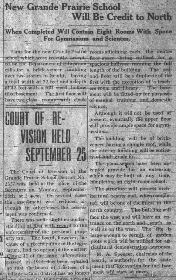Every year new schools seem to be popping up in Grande Prairie to accommodate the needs of a growing city.  In 1916, the plans for a new school for Grande Prairie were accepted by the Alberta Department of Education.  At the time of its construction in 1917, the Montrose School was the largest brick building north of Edmonton and in every way a “credit to the north.”