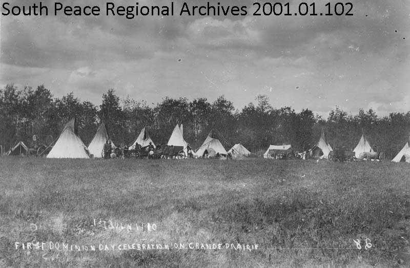 Photograph: First Dominion Day Celebration On Grande Prairie. 1910. SPRA 0001-2001.01.102 Part of Pioneer Museum Society of Grande Prairie and District fonds.