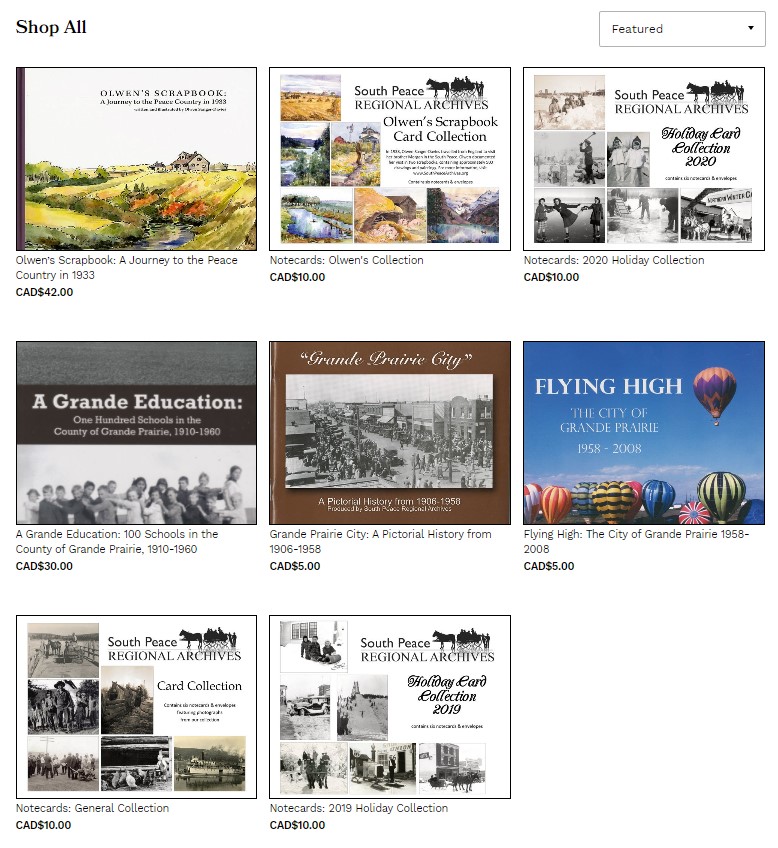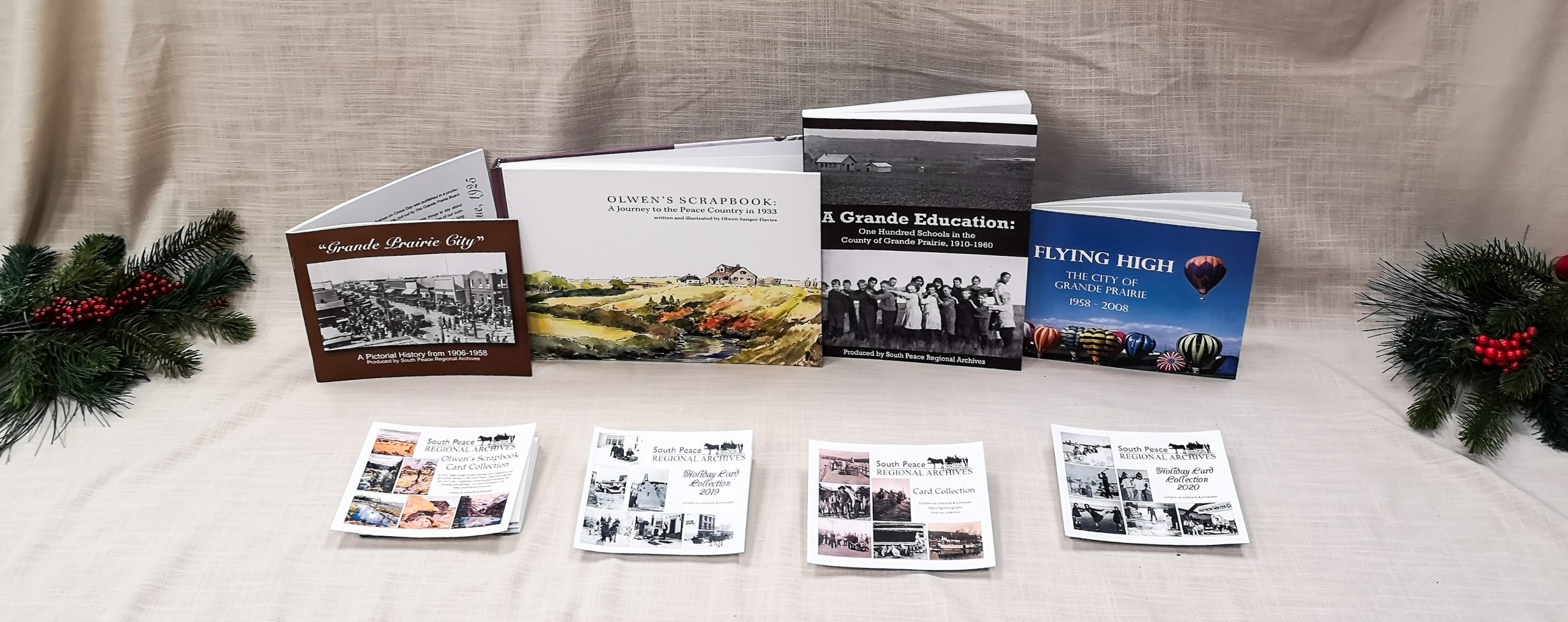 You asked, and we delivered! Due to popular demand, the South Peace Regional Archives has launched a new online store, featuring all of our books and card sets. To celebrate this exciting event, we have printed three brand new sets of notecards: a 2020 Holiday Collection, a General Collection AND a collection featuring artwork from Olwen’s Scrapbook: A Journey to the Peace Country in 1933. These items would make for a great stocking stuffer or last minute Christmas gift for the heritage enthusiast in your life.