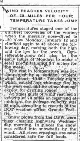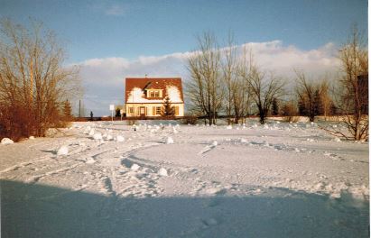 I was interested in the mention of snow rollers in this account of a weird winter storm. In the late 1970s there was a storm like this here. The storm itself was a bit frightening, with the very high winds and drastic change in temperature and the power was out for several hours. I remember going out the next day and seeing all the snowballs rolled up in the yard around town. (The picture is of the Anderson house in Wembley, which was an airport house, and now belongs to the Wembley Arts, Culture and History Society).