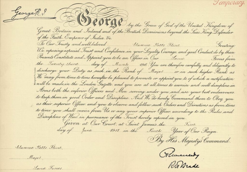 Clarence was born in Claremont, Ontario on November 1, 1881. In 1907 he moved to Edmonton and served as a supervisor of physical instruction in local schools. In 1909 Clarence filed on a homestead near Beaverlodge (NW 31-71-9-W6). In 1910 he married Mercy Elizabeth Grant. When Clarence joined the Canadian army in May of 1915, Mercy went with him to serve in England as a nurse. However, she returned to Canada when Clarence was sent to the front lines in France. Clarence was awarded the Military Cross while serving overseas. According to the Circumstances of Death Register, Clarence was hit in the stomach by an enemy machine gun bullet and killed instantly during an advance in the vicinity of Cambrai on September 29, 1918 .