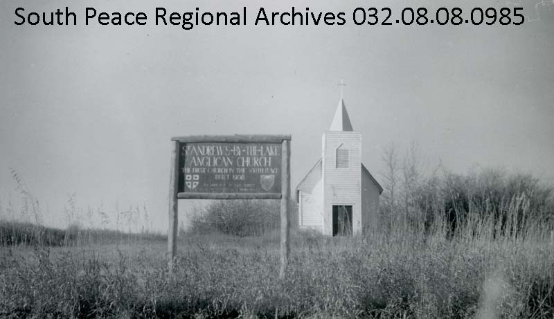 Image: St. Andrews-by-the-Lake Anglican Church, built in 1908, overlooking Lake Saskatoon, ca. 1940 (SPRA 032.08.08.0985)