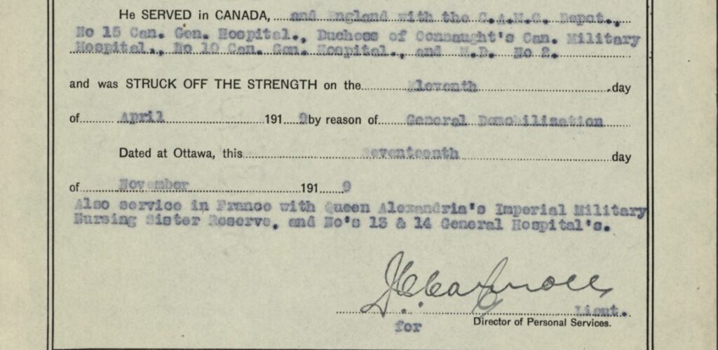 Branch: Queen Alexandra’s Imperial Military Nursing Sister Reserve; Canadian Army Medical Corps